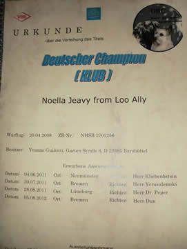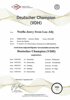 August 2012 - geschafft... Noella ist Deutscher Champion VDH und Deutscher Champion Klub