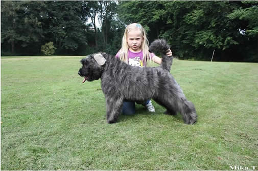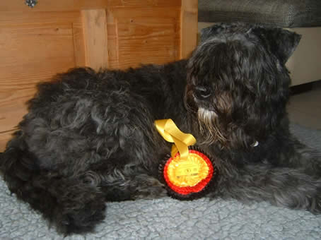 18 tollen Bouviers und ist dort als schönste Hündin vom Bouvierspezialrichter beurteilt